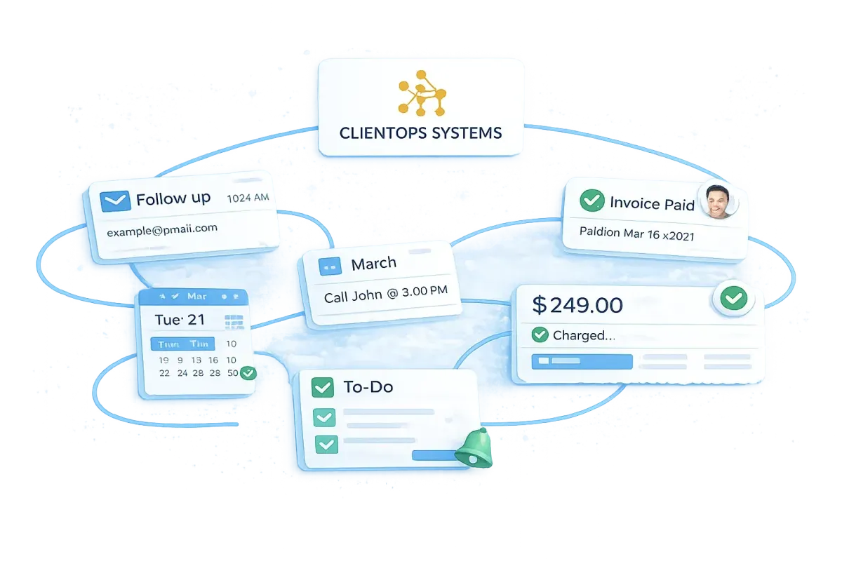 Client Ops Systems verzamelt leadcaptatie, opvolging, afspraken, betalingen en cliëntbeheer in één overzichtelijke workflow.